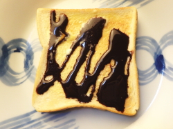 トーストした食パンにバターを塗ったら、上からチョコレートソースをかけてください。