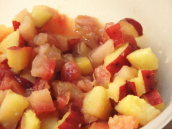 を盛り付けたら、上からチョコレートソースをかけて出来上がり。