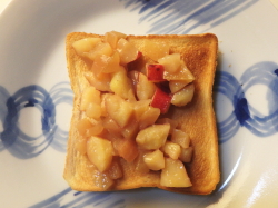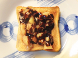 ※マーマレードとチョコレートも合うけども、このコラボもなかなかのオツ。味に一ひねりあるトーストの出来上がり。