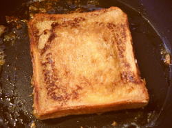 - 食パンをひっくり返して、2分焼いてください。