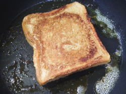 - 食パンをひっくり返して、2分焼いてください。