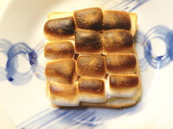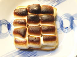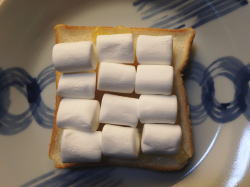 その上に、マシュマロを並べたら、5分トーストしてください。