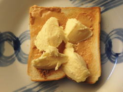※アイスとピーナッツバターのコラボはハマること請負!シンプルだけど、こってりなスイーツトーストの出来上がり。