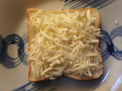 その上にピザ用チーズを盛り付けたら、5分トーストしてください。