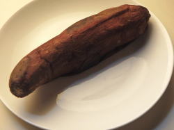 焼き芋を厚く輪切りしてください。皮を剥いてください。