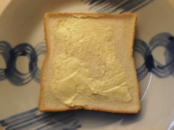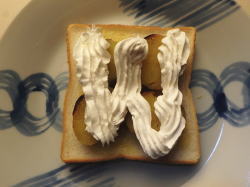食パンをトーストしたら、上からホイップを絞って出来上がり。