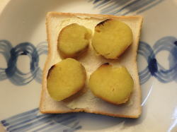 食パンにバターを塗り、その上から厚切りした焼き芋を乗せます。