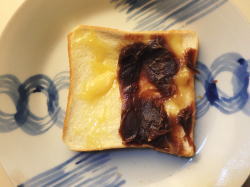トーストの上から、半分だけあんこを塗り付けて出来上がり。