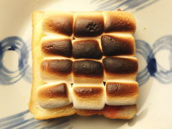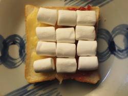 その上に、マシュマロを並べて、5分トーストして出来上がり。