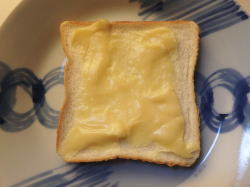 その上からシナモンシュガーをふりかけたら、トーストして出来上がり。