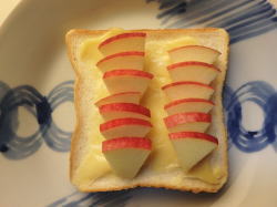 食パンにカスタードジャムを厚めに塗ったら、カットしたリンゴを並べてください。