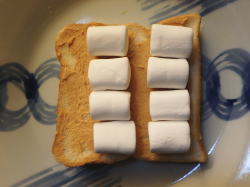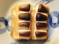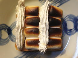 マシュマロが焼けたら、隙間の列にホイップを絞って出来上がり。すきま1行につき、2回ホイップを絞るとうまい!