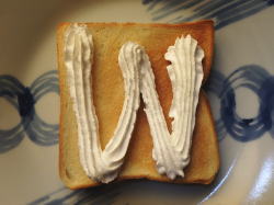 トーストした食パンにホイップを絞ってください。
