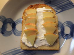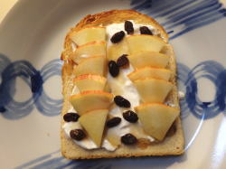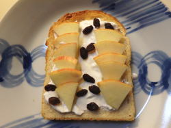 ※シャクシャクしたリンゴの歯ごたえのおいしいトーストです。メープルとレーズンの仕事にも注目して!