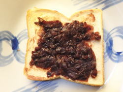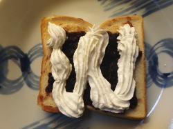 トーストした食パンに、あんこをぬったら、上からホイップを絞ってください。