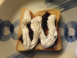トーストした食パンにあんこを塗ったら、上からホイップを絞ってください。
