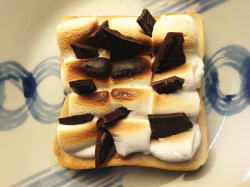 ※みんな、スモア好きだよね? で生まれたトーストです。マシュマロのサクとろぉ、と板チョコがよく合います。