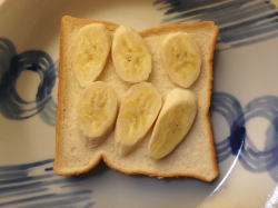 食パンにバナナを並べ、その上にスライスチーズを乗せて、5分トーストします。