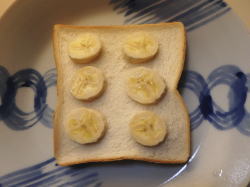 食パンにバナナを並べ、その上にスライスチーズを乗せ、5分トーストしてください。