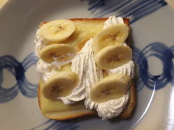 トーストの上からホイップを絞って、スライスしたバナナを並べます。