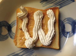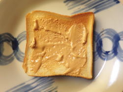 トーストした食パンに、ピーナッツバターを塗ってください。