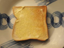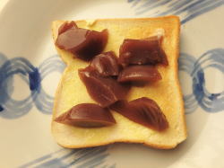 トーストした食パンにバターを塗ったら、水ようかんを盛り付けてください。