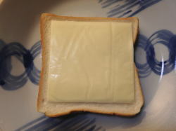 食パンにとろけるチーズを乗せ、5分トーストしてください。