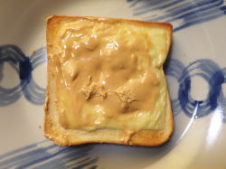 焼きあがったトーストに、ピーナッツバターを塗って出来上がり。