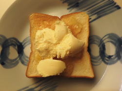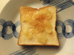 トーストした食パンにリンゴジャムを塗ってください。