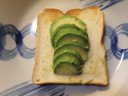 食パンに スライスしたアボガドを乗せ、5分トーストしてください。