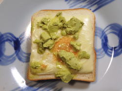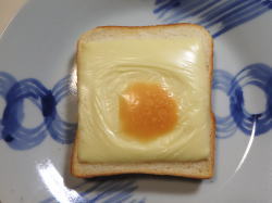 チーズがとろけたら、その上から、ピスタチオスプレッドを塗って出来上がり。