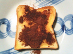 トーストの上にバターを塗って、ミロをまぶしたら出来上がり。