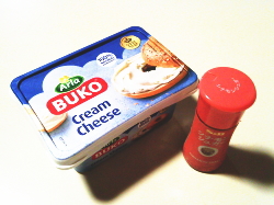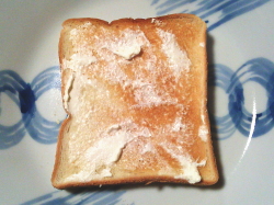 トーストの上に、クリームチーズを塗って、シナモンシュガーをかけたら出来上がり。