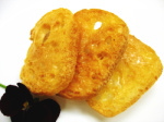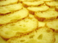 ※他所のラスク作りを見てみると、どうも事前には乾燥はさせない様なんですが・・・その分、低温で20〜30分ほど時間を掛けてじっくりと焼くよう。(私は事前に乾燥させるように教わっていたので、これはどっちが正しいんだろうなぁ?と思いました。)ただ、上の様に事前に水分を飛ばしておけば、焼くときは非常に短時間で終わります。水分が飛ぶのを焼いている間に、確認する必要もないし、ただ、普通に食パンの様にトーストするだけでパリパリに。もし、一晩寝かせるのが面倒な人は、じっくり時間を掛けて焼き上げて下さい。 |