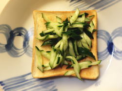 | ※浅漬けをトーストに盛り付けたらどうだろう?と成りましたよん。食えないわけではないが、食えないわけではないが。やはりカロリーはおいしさの神なり。カロリーのねーもんは、うまくねーんだよ!(何自暴自棄してんの?)でも栄養があるから食べてみー! | |||||||||