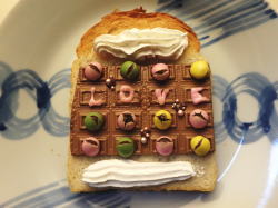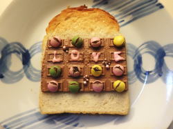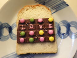 食パンに、デコ板チョコを乗せて、5分トースト。