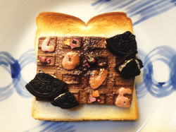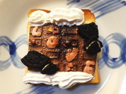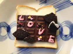 食パンに、デコ板チョコを乗せて、5分トースト。