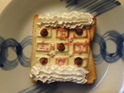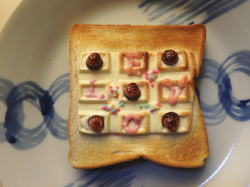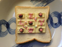 食パンに、デコ板チョコを乗せて、5分トースト。