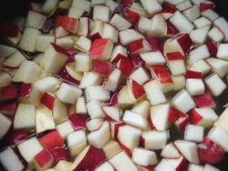 リンゴの皮を剥かずに、1cm角の角切りにしてください。