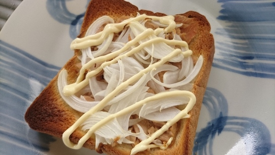 食パンにシーチキンをお好み量乗せてスライス玉ねぎを散らします。