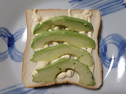食パンに、アボガドを並べ、マヨネーズをかけてください。