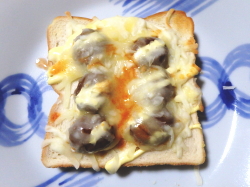 ※肉団子の美味しさに左右されるこのトースト、美味しい肉団子を探してね!タバスコがうまし!