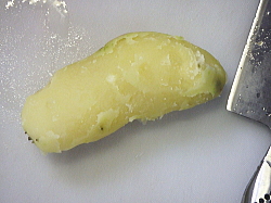 軍手とビニール手袋をして、熱いうちにじゃがいもの皮を剥いてください。