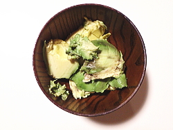 ※くずれやすいアボガド。もう丁寧に皮を剥かず、スプーンでくりぬいちゃいました。アボガドとわさび醤油は絶品なり。