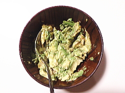 アボガドを醤油とわさびで味付けし、よく混ぜ合わせてください。