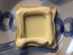 その上から、キャップを外したマヨネーズを土手のように絞り。