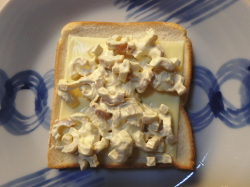 ※ひらめいた以上、作る使命があると思い立ち作りました。チーチク美味しいしね。お味はちくわとは思えないトーストにベストマッチのお味。マヨネーズが美味しさの接着剤に。