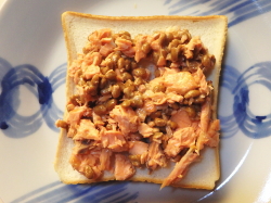 ※ん?いつもの納豆トーストと違う。こいつは納豆トーストの究極進化形。うますぎて、うますぎて、感動だー!