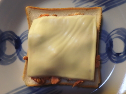 食パンに1を盛り付け、上にスライスチーズをかぶせてください。