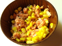 ほぐした鮭の身とコーンを和えます。